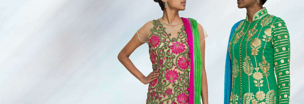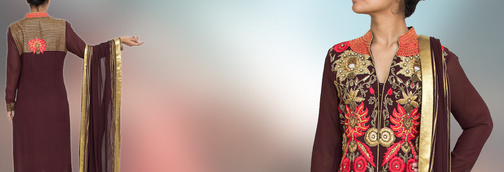 Nude color chanderi anarkali with printed chanderi dupatta.